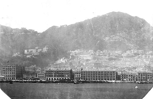 zurück Blick auf Hongkong-Island weiter![]() ganz links das Hong Kong Hotel, im Hintergrund der noch unbebaute Victoria Peak |